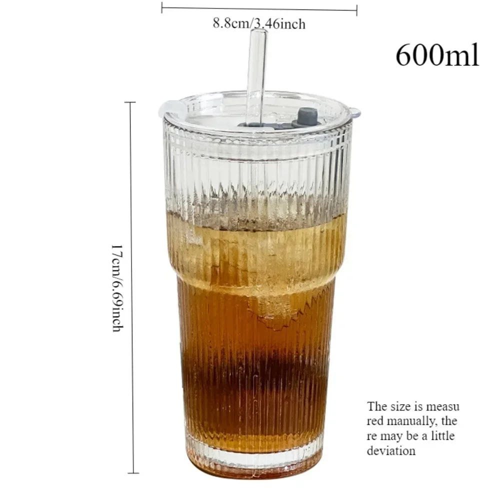 1/2/4Piece 20Ounces Glass Cup with Leak Proof Lid Thickened Glass and Glass Straw for Iced Coffee Smoothies Cocktails and Juices